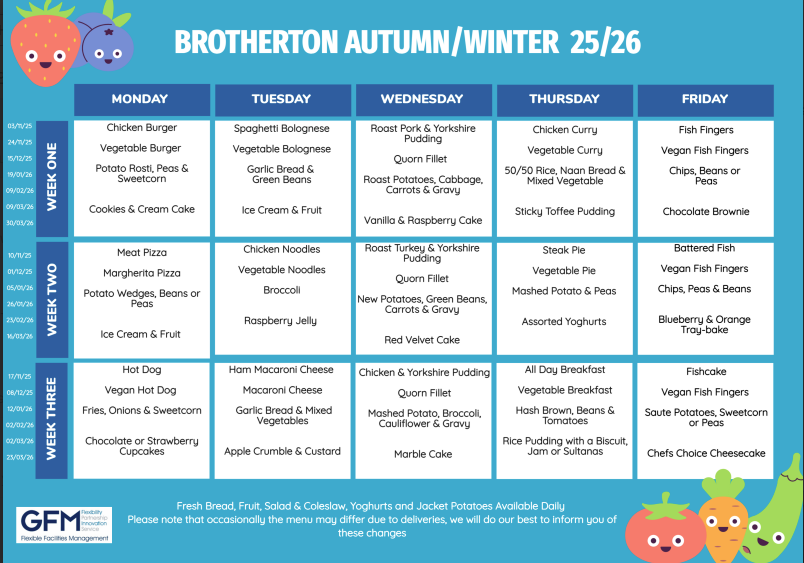 Please ensure you pre-book school lunches and breakfast club on Parentpay 48 hours in advance of the day required.