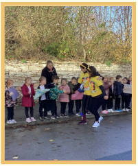 This morning, we received an exciting phone call from the Producer of BBC Look North asking if they could call by this morning to pay us a visit with Pudsey from Children In Need! To support the charity, Lindsay Burrow and their presenter Amy Garcia took part in ‘The Thousand Mile Challenge’ and they asked if they could come and say hello. Today, they have walked from Castleford to Selby and tomorrow they are walking over 20 miles with their legs tied together! It’s such a wonderful cause and we were absolutely delighted to be able to go out to the front of the school to cheer them on!