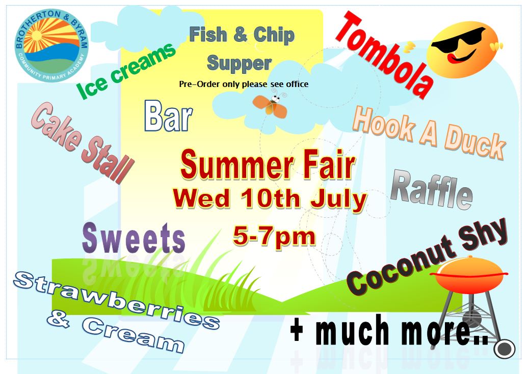 Please could we kindly ask parents for donations for our Summer fair, including bottles for our tombola. Our summer fair will include: Ice cream stall, Bar including soft drinks Cake stall Tombola for the hedgehog rescue School tombola Sweet stall White elephant stall Hook a Duck Coconut shy Hot dogs Tea & coffee Mini figures...